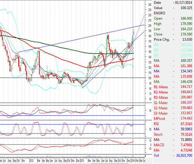 Our Preference: Short Sell ENGRO below 193 till 196.15 with strict stop loss of 199.80 and profit target at 179.59 and 172 in extension.
