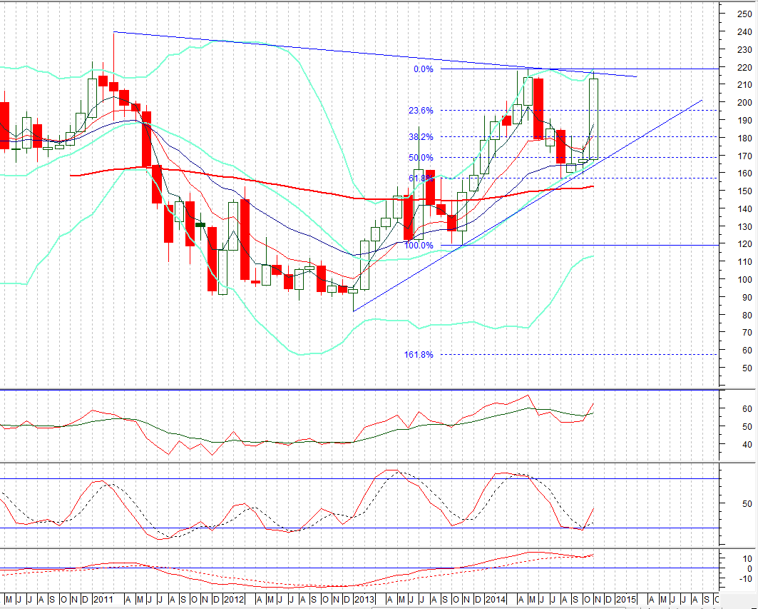 Hey Folks lets play some serious stuff. How many knows how to calculate expansion levels after correction. Come on Calculate Expansions of Engro Corporation i m presenting Monthly Chart of Engro Corporation (ENGRO) for you guys. I will help out if some one would not become able to calculate. Its a challenge for Tech Gurus. Here is some thing beyond expansions so please mention that also if you know. For comments use your facebook id and post comments below .