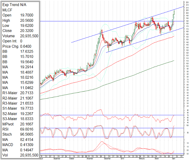 Our Preference: Buy MLCF around 18.83 with a strict stop loss of 18.41 and profit target at 20.87 and 21.05
