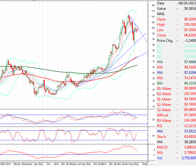 Our Preference:Short Sell NML below 98.00 with a strict stop loss of 100.95 and profit target at 92.13
