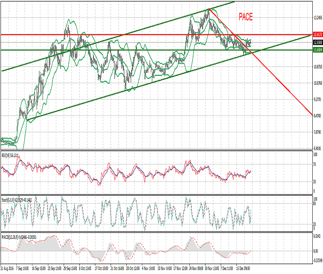 Rebound Insight Our Pivot: 11.10 Our Preference: Start Buying PACE from current price and average it out till 11.65 with strict stop loss of 11.10 and profit target at 12.86 and 13.58 on short term bases while 14.36 on mid term bases. Alternate Scenario: Downward penetration of 11.10 will call for 10.23 NOTE: PACE is moving in an upward price channel on Hourly chart and have completed its fourth primary wave of Elliot Wave now its going to start its fifth wave after completing 61.8% correction. Hourly Stochastic and MAORSI are also in bullish mode. Recommendations: Start buying from current price and average it out till 11.65 with target at 13.58.