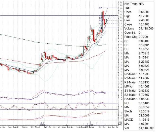 Our Preference: Buy TRG above 8.52 with a strict stop loss of 8.04 and 7.65 and profit target at 10.67 Or buy abvoe 10.78 if it bcome able to close above 10.78 with profit target at 12.06 with extention towards 12.84 and 13.78