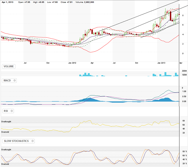 NOTE: TRG is moving in an upward channel since December 2012 and have retested its lower edge in previous few weeks where it got strong support from channel trend line.