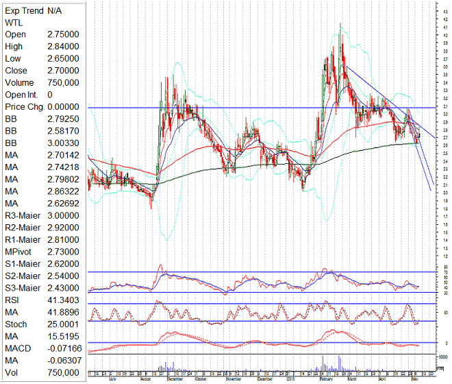 Our Short Term Preference: Buy WTL as long as 2.62 is sustained as support with strict stop loss of 2.41 and profit target at 3.23