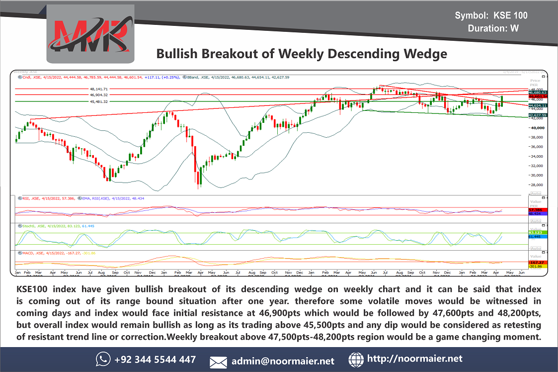 Overview & Forecast of market trend for KSE100 index on basis of technical analysis.