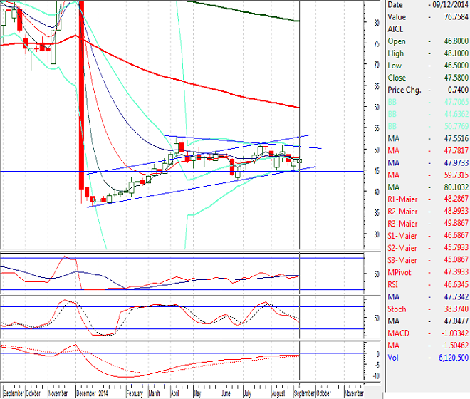 Our Preference: Start Buying AICL above 46.85 and add averages till 45.60 with strict stop loss of 44.59 and profit target at 50.20 with extension towards 51.94