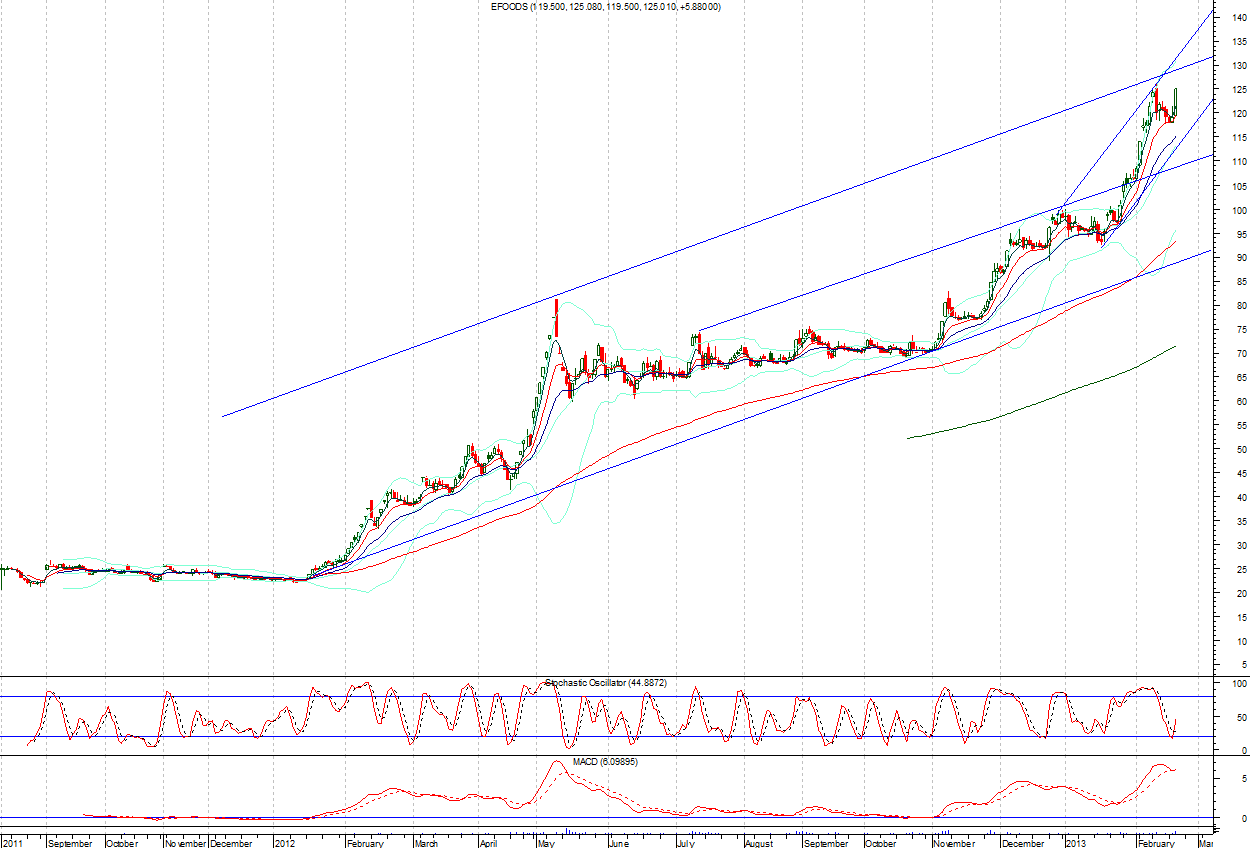 Our Prefrence: Bullish trend in EFOODS is getting its limits to an end but buying can be initiated as long as 117.80 is support with target 129.38 and 132.84