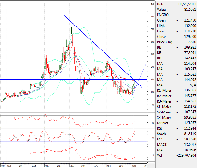 Our Preference: Short Term Investors can take a chance to short sell Engro with a strict stop of 146.02 to 147.82 area with targets at 128.72 and 119.13 with extension towards 115 . (Buying not recommended right now)
