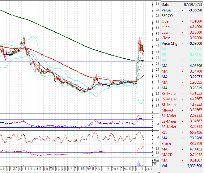 Our Preference : Buy SEPCO above 3.60 till 3.29 with a strict stop loss of 2.84 and profit target at 4.85 and 5.42