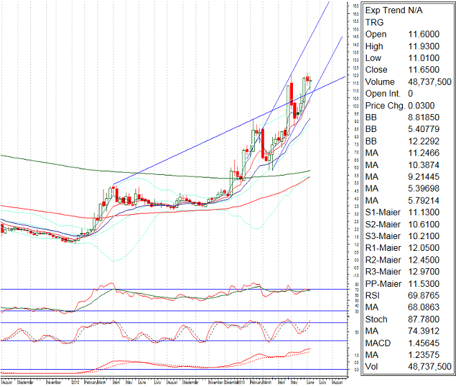 Our Preference: Buy TRG above 11.25 with strict stop loss of 10.67 and profit target at 12.13 and 13.10 with extension towards 13.84 and 14.80